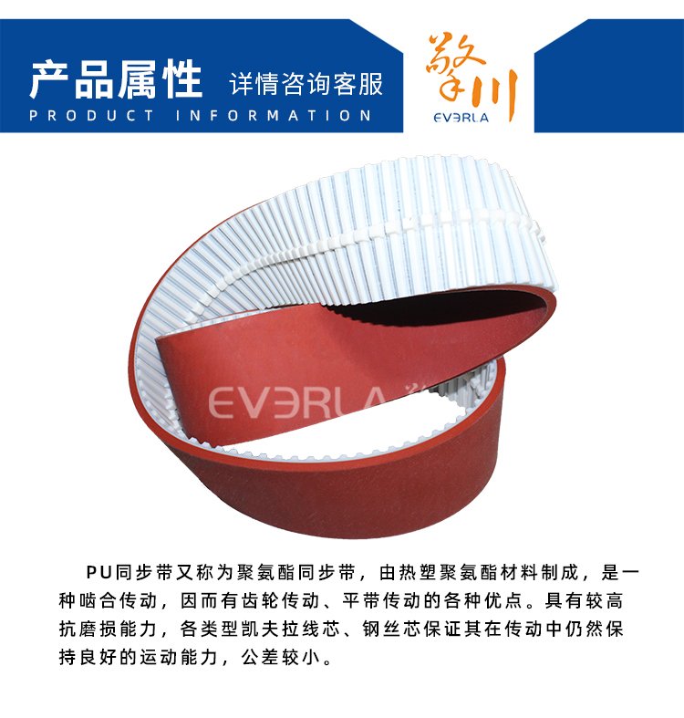 擎川EVERLA > pu同步帶 > PU同步帶加紅膠加導條