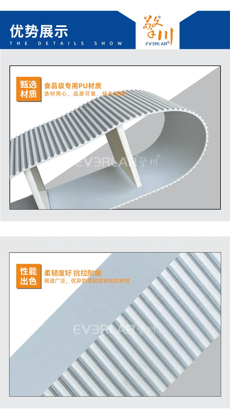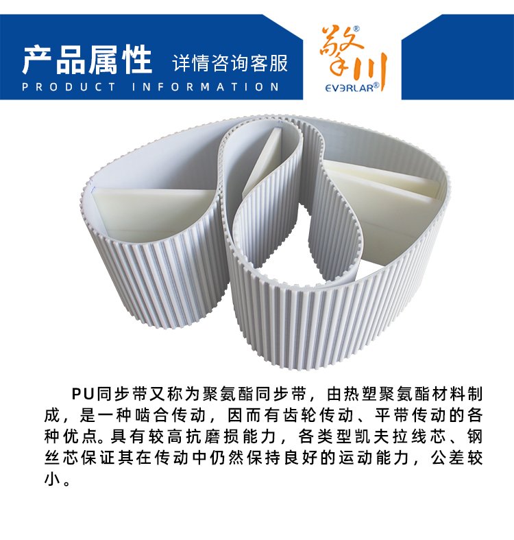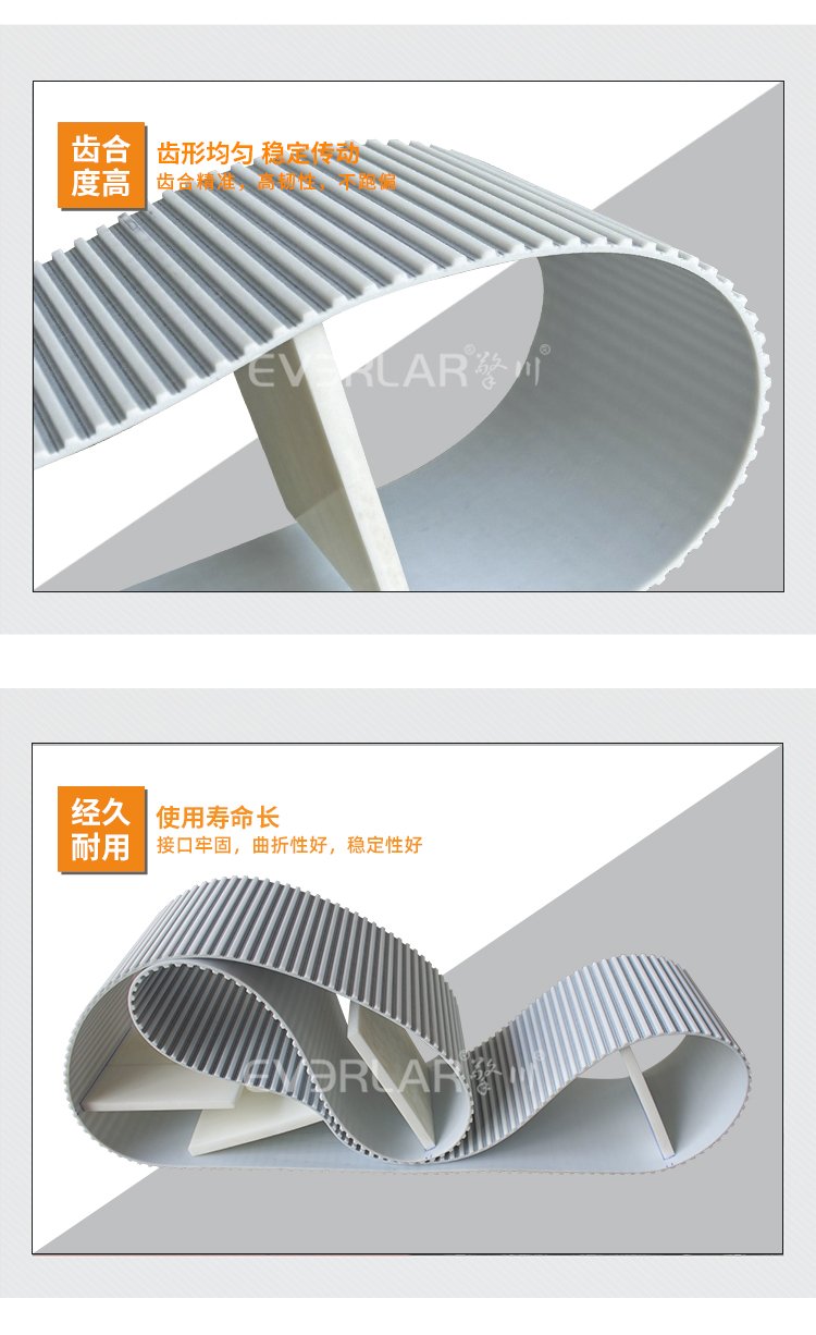 擎川EVERLA > pu同步帶 > 白色PU聚氨酯同步帶加大擋板齒形帶耐老化耐磨防滑定制工業(yè)傳動(dòng)帶