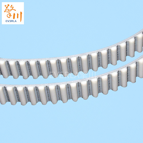 同步帶是一種齒形帶,它對制造和安裝精度要求甚高,且要求有嚴格的中心距,同步帶可用于速度較高的場合,傳動時線速度可達40m/s,傳動比可達10,傳動效率高,結構緊湊,耐磨性好,同時它也屬于工業(yè)皮帶的一種,同步帶耐熱耐潮。并且不需要潤滑,這些都是同步帶的主要特點。廣州擎川根據(jù)客戶需求,定制加工的同步帶也受到了客戶的肯定,今天給大家?guī)硭目钔綆Ъ庸ぎa品: